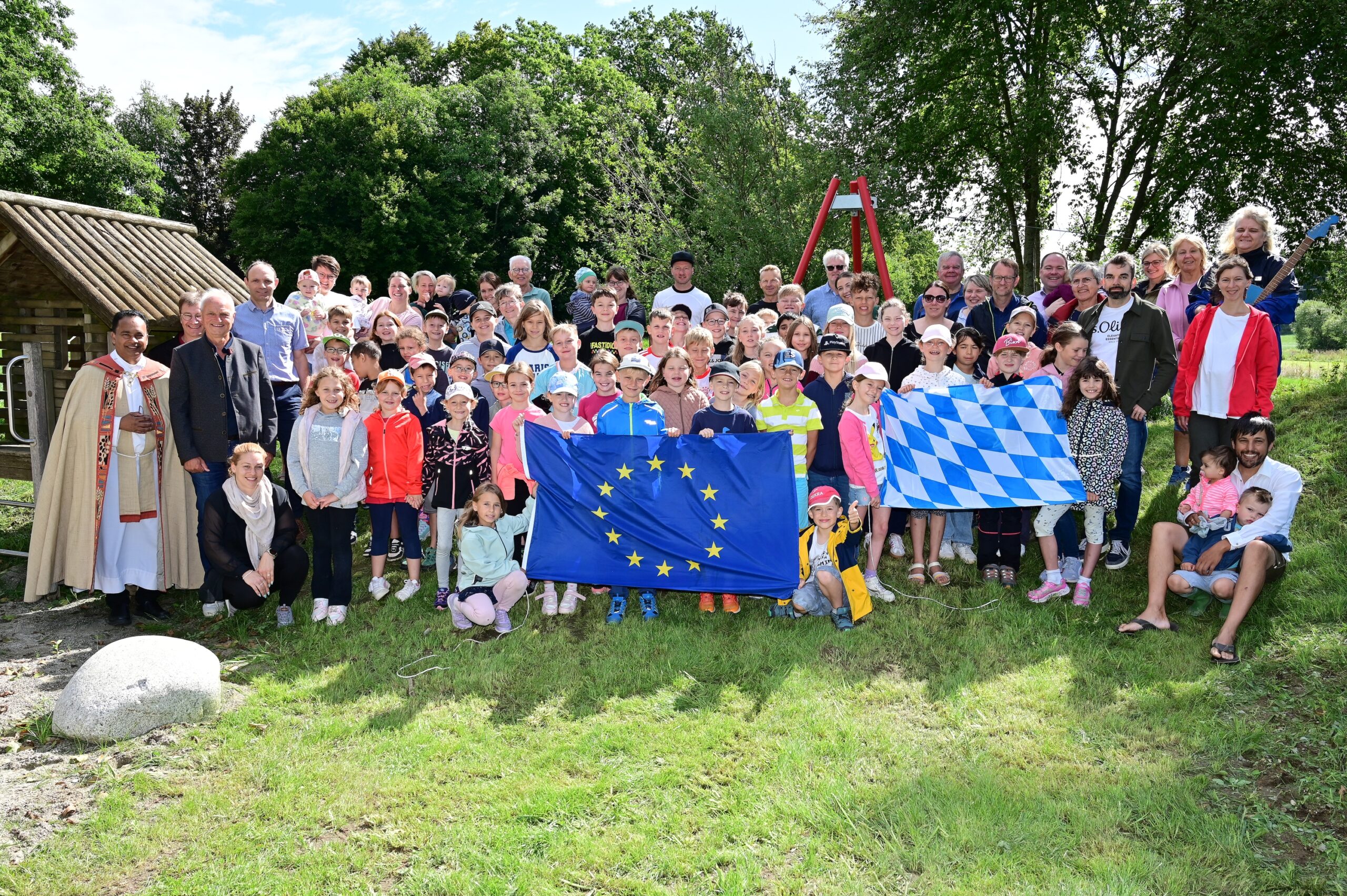 Die Neugestaltung des bereits in die Jahre gekommenen, aber immer noch sehr beliebten Spielplatzes in Singenbach war ein großes Anliegen der Gemeinde Gerolsbach. In Zusammenarbeit mit den Singenbacher Bürgerinnen und Bürgern entstand im Zuge der Öffnung des Gerolsbachs die Idee den angrenzenden Spielplatz mit weiteren Spielgeräten aufzuwerten und um eine Wissenskomponente zu den Themen „Wasser und Natur“ zu erweitern. Nun konnte Martin Seitz, Bürgermeister der Gemeinde Gerolsbach, die anwesenden Kinder, Anwohner, Gemeinderäte, Pfarrer Biju Merryvilla, LEADER-Koordinatorin Agnes Stiglmaier und das Team der zuständigen LAG Pfaffenhofen, Tina Schuler und Ramona Müller, zur offiziellen Eröffnung begrüßen und sich bei allen für die gute Zusammenarbeit bedanken.