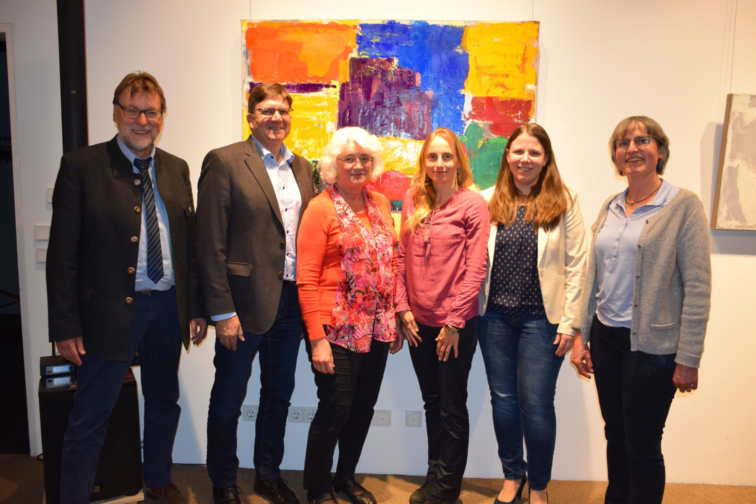 Von links nach rechts: Landrat Martin Wolf, Bürgermeister Albert Vogler, Seniorenbeauftragte Elfriede Schmid, LAG-Managerin Carmen Glaser, LAG-Assistentin Tina Schuler, LEADER-Koordinatorin Agnes Stiglmaier