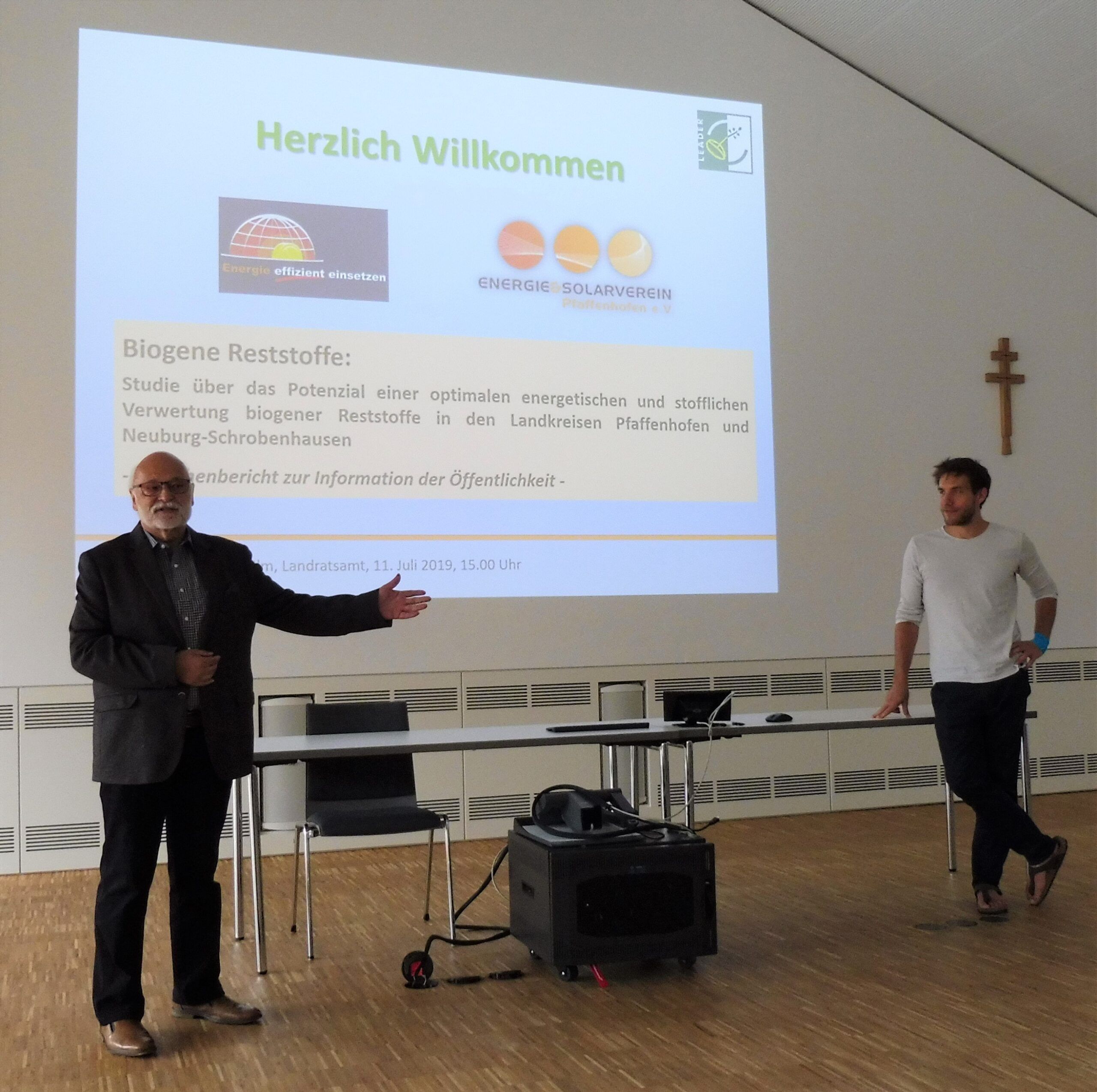 Am 11. Juli 2019 präsentierten die Vereine Energie effizient einsetzen (eee) aus Schrobenhausen und der Energie- und Solarverein Pfaffenhofen (ESV) im Landratsamt Pfaffenhofen ihren Zwischenbericht zum LEADER-Projekt „Biogene Reststoffe“. Diese Studie untersucht das Verwertungspotenzial der biogenen Reststoffe in den Landkreisen Neuburg-Schrobenhausen und Pfaffenhofen.