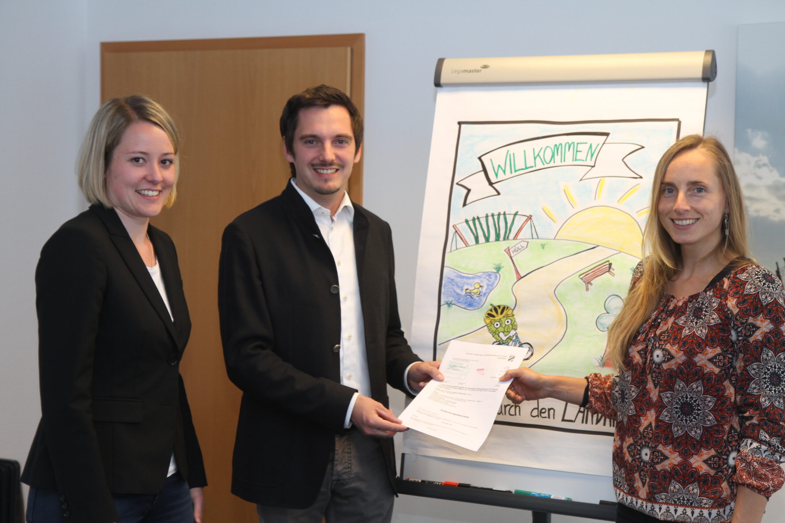 (v.l.n.r.) Projektverantwortliche Lisa Sutter, KUS-Vorstand Johannes Hofner und Carmen Glaser, Geschäftsführerin der Lokalen Aktionsgruppe Landkreis Pfaffenhofen a.d.Ilm, freuen sich über das bewilligte Projekt.