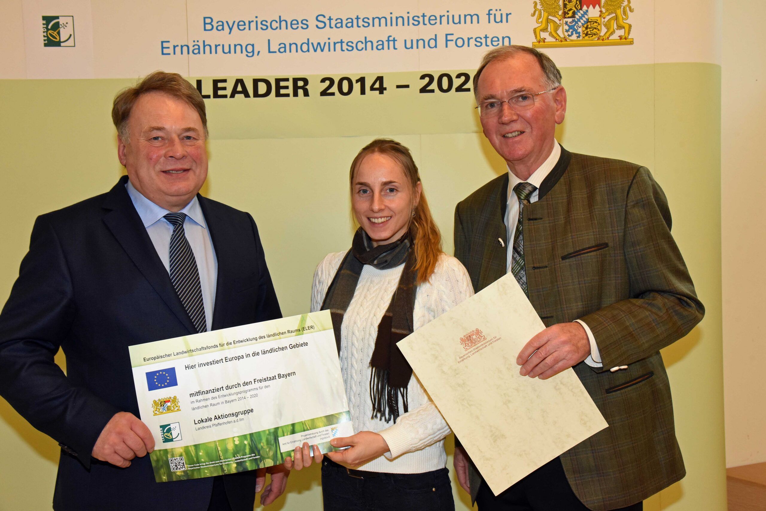 Von den insgesamt 68 LAGs in Bayern schafften dies 31 LAGs, darunter auch die LAG Landkreis Pfaffenhofen a.d. Ilm. Um das Engagement dieser besonders aktiven LAGs zu honorieren, wurden diese mit einem zusätzlichen Förderbeitrag von jeweils 300.000 Euro ausgestattet. Die Förderzusage wurde LAG-Managerin Carmen Glaser am 18. Dezember 2017 im Staatsministerium für Ernährung, Landwirtschaft und Forsten von Staatsminister Brunner persönlich überreicht.