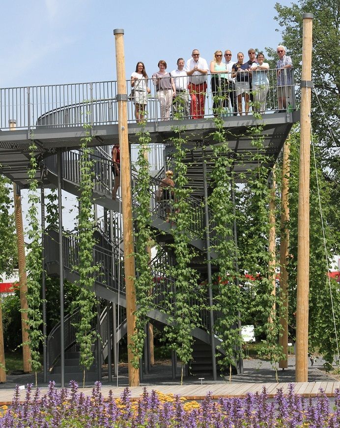 Man traf sich bei der Schaubäckerei Wiesender, wo Geschäftsführer Karl Wiesender durch den Lehrpfad der neuen Produktionsstätte führte. Im Anschluss empfing Walter Karl, Geschäftsführer von „Natur in Pfaffenhofen a.d. Ilm 2017 GmbH“ die Delegation auf dem Gelände der Landesgartenschau. Gemeinsam wurde der Hallertauer Hopfenturm erklommen und bei strahlendem Sonnenschein die Aussicht auf den Bürgerpark genossen, während Herr Karl von der Umsetzung des Projektes berichtete.