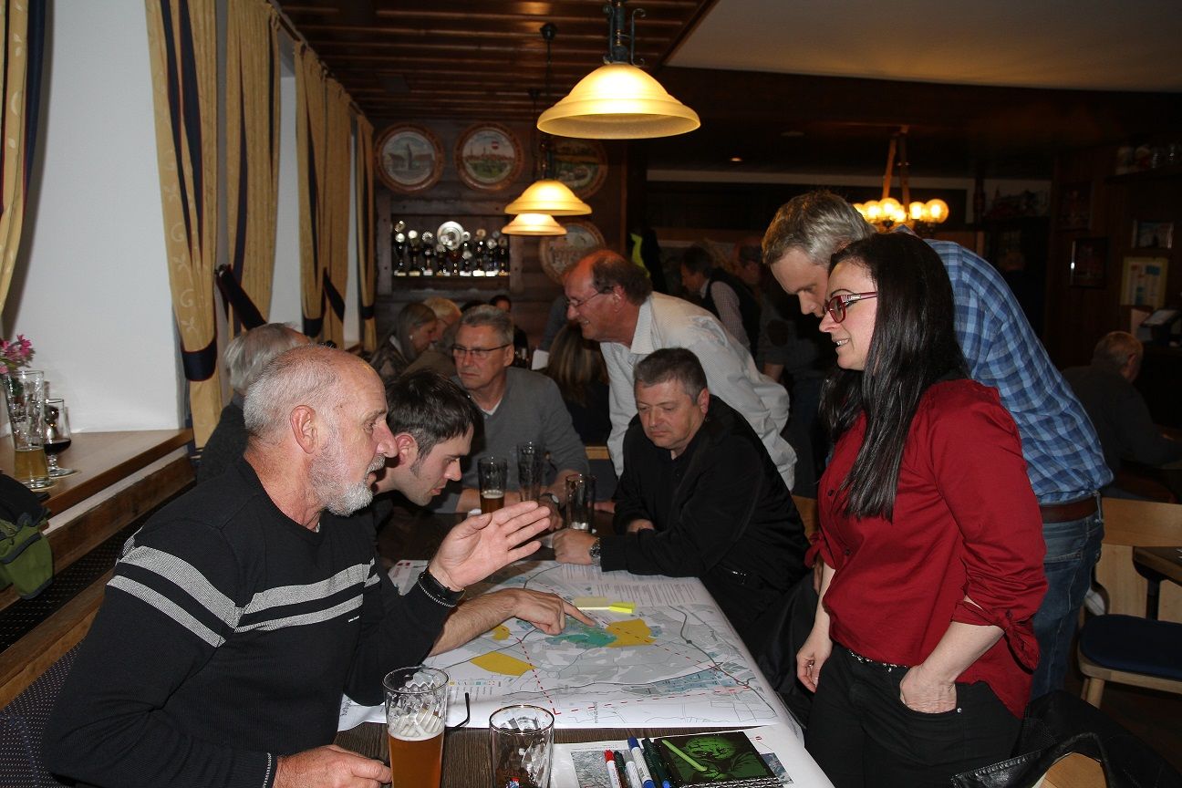 Mit der Planung beauftragt wurde das Landschaftsarchitekturbüro Köppel in Mühldorf/Inn. Jedoch gebe es keine konkrete Planung seitens des Büros, betonte Landschaftsarchitektin Barbara Grundner-Köppel. Vielmehr sollten von Anfang an alle interessierten Bürger und Öffentlichkeit eingebunden werden und bei den insgesamt vier veranschlagten Bürgerbeteiligungen die Möglichkeit haben, Anregungen, Wünsche und Kritik zu äußern. Auch ginge es auf keinen Fall darum – so die Befürchtung einiger Anwesenden – das einzigartige Naherholungsgebiet zu einer Vergnügungslandschaft á la Disneyland umzugestalten. Vielmehr solle Vorhandenes weiterhin genutzt, ausgebaut und Nutzungskonflikte entschärft werden. Frau Grundner-Köppel stellte die Ergebnisse der Bürgerbeteiligung vom 4. April und die dabei besprochenen Konflikte sowie das Potential der Seenplatte Feilenmoos vor. Im Anschluss teilten sich die Anwesenden in Themengruppen auf, um vorhandene Ideen zu bündeln und effektiver zu diskutieren. Dazu wurden Arbeitspläne und Luftbilder des Areals verteilt, auf welche die Teilnehmer ihre Anmerkungen und Vorschläge schreiben konnten. Die Ergebnisse der Arbeitsgruppe wurden anschließend vorgetragen. Ziel des Nutzungskonzeptes ist es, dass Naturschutz und Landwirtschaft ebenso wie die Wünsche nach Freizeitaktivitäten und Erholung an der Seenplatte verwirklicht werden können. Nach Vorstellung der Ergebnisse bedankte sich Frau Grundner-Köppel bei allen Anwesenden für deren Mitwirkung und Bürgermeister Christian Staudter lobte ebenfalls die rege Beteiligung und das Engagement der Bürger.