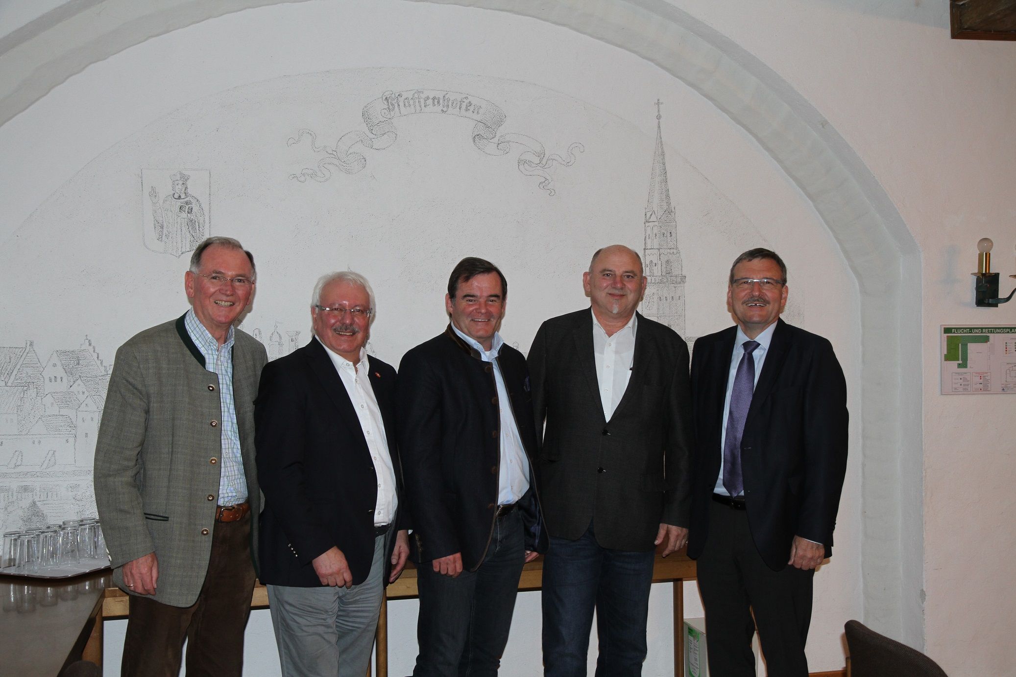 v.l.n.r.: Anton Westner (neugewählter 2. Stellvertreter des LAG-Vorsitzenden und stellvertretender Landrat Pfaffenhofen a.d. Ilm), Christian Staudter (1. stellvertretender LAG-Vorsitzender und 1. Bürgermeister von Geisenfeld), Albert Gürtner (2. Bürgermeister der Stadt Pfaffenhofen und öffentliches LAG-Mitglied), Andreas Meyer (Schatzmeister des LAG-Vorstandes und 1. Bürgermeister von Münchsmünster) und Hans Wojta (Beisitzer im LAG-Vorstand und 1. Bürgermeister von Hettenshausen)