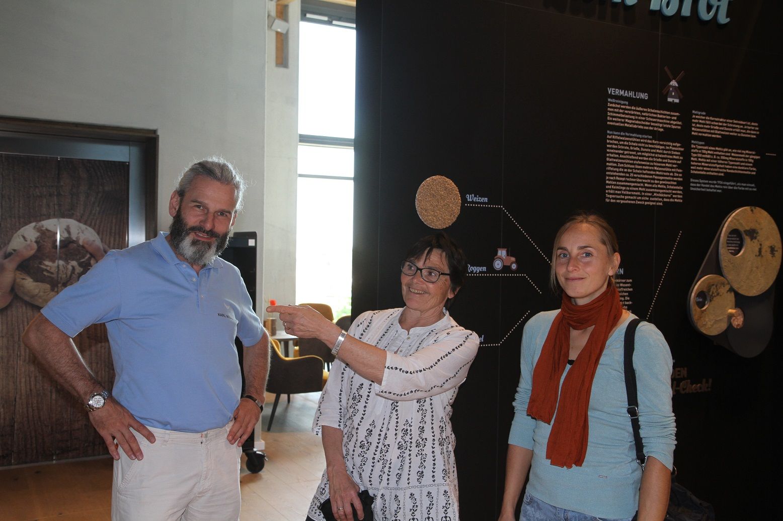 Dieser führt draußen am Spielplatz entlang vorbei an den verschiedenen Getreidearten. Auf Informationstafeln erfährt man einiges über deren Eigenheiten und Verwendungsmöglichkeiten. Im Innenbereich ist sehr anschaulich dargestellt, wie das Getreide geerntet und weiter verarbeitet wird. Vom oberen Stockwerk des Cafés aus kann man durch ein Schauglas einen Blick in die Backstube werfen und den Angestellten beim Herstellen des Teiges und dem Formen und Backen von Broten und anderem Gebäck zuschauen. Eine durch und durch transparente Backstube. Bei der Dekoration des zweistöckigen Cafés wurde auch ganz auf das Thema „Getreide“ gesetzt und so entstand ein einzigartiges Ambiente, in welchem man die direkt vor Ort hergestellten Produkte genießen und sich nebenbei über deren Entstehung informieren kann. Um Kindern das Bäckerhandwerk näherzubringen, können sich Schulen und Kindergärten für die Lehrbackstube anmelden und dort z.B. Brezeln formen, Mürbeteig herstellen und Plätzchen backen. Bei der Gestaltung des Spielplatzes, der sich neben dem Café befindet, hatten die Kinder ein Mitspracherecht. Im vergangenen Jahr hatte es hierzu einen Wettbewerb gegeben, bei dem es darum ging, die Vorstellungen der Kinder zu berücksichtigen. Bei diesem LEADER-Projekt wurden Bildungselemente und Spielplatz von der Lokalen Aktionsgruppe (LAG) mit EU-Mitteln gefördert. Mit einem beispielhaften Bildungsangebot für alle Bevölkerungsschichten zum wichtigen landwirtschaftlichen Produkt Getreide und dem Grundnahrungsmittel Brot trägt es zur regionalen Wertschöpfung bei.
