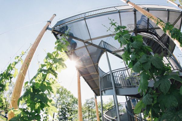 Rechtzeitig zur Landesgartenschau 2017 entstand im Bürgerpark der Stadt Pfaffenhofen eine Aussichtsplattform, die von einem mit Hopfen bepflanzten Hopfengarten eingerahmt wu…